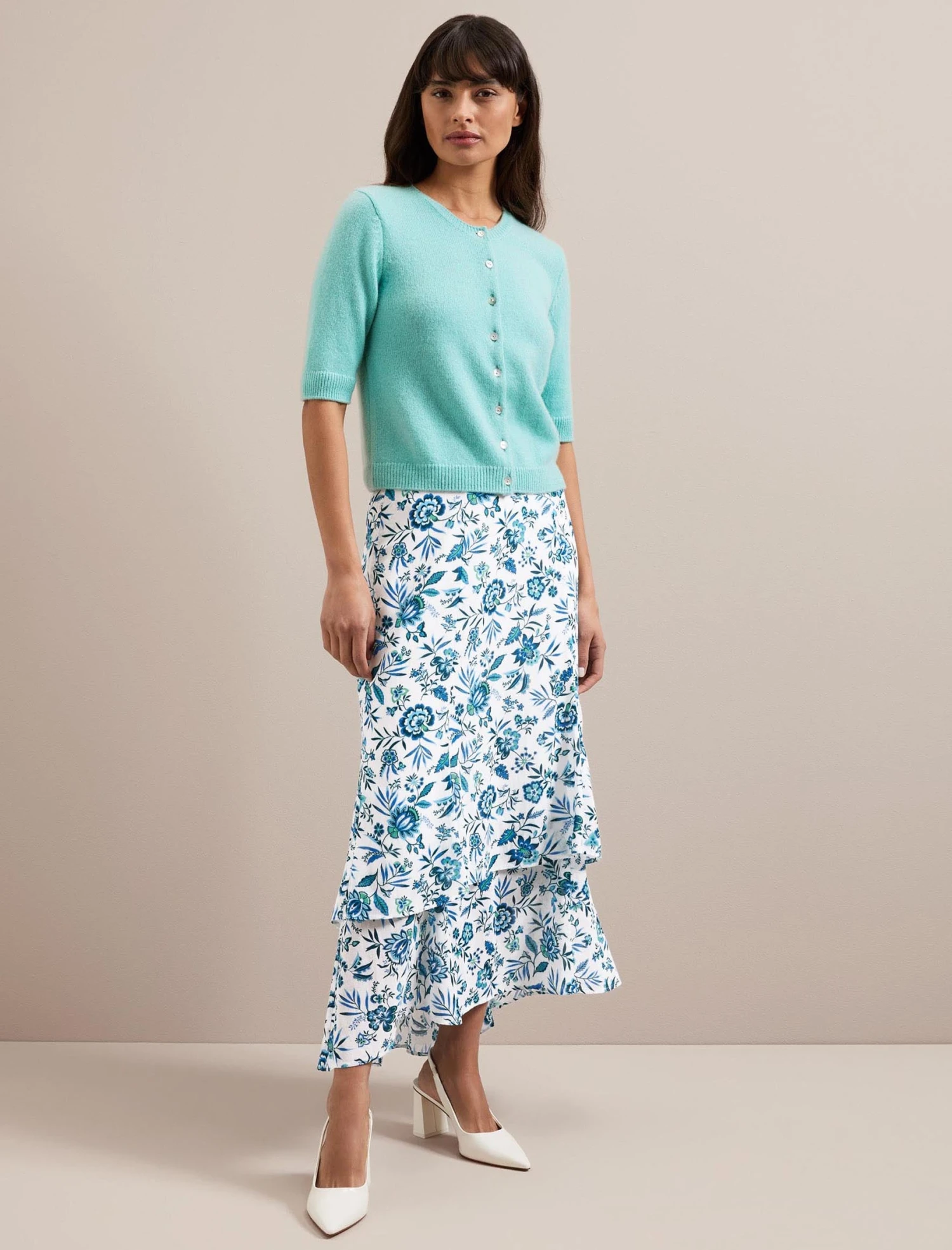 Taking its style cues from the elegance of the 1950s, the Clara cardigan has work to weekend versatility. Designed in a soft, lofty cashmere with pretty shell summarys, the shorter length means it looks great over a dress, with a skirt or paired with trousers. And it works with just about everything – dressed down with denim, to soften sharper tailoring or to compliment a feminine skirt.