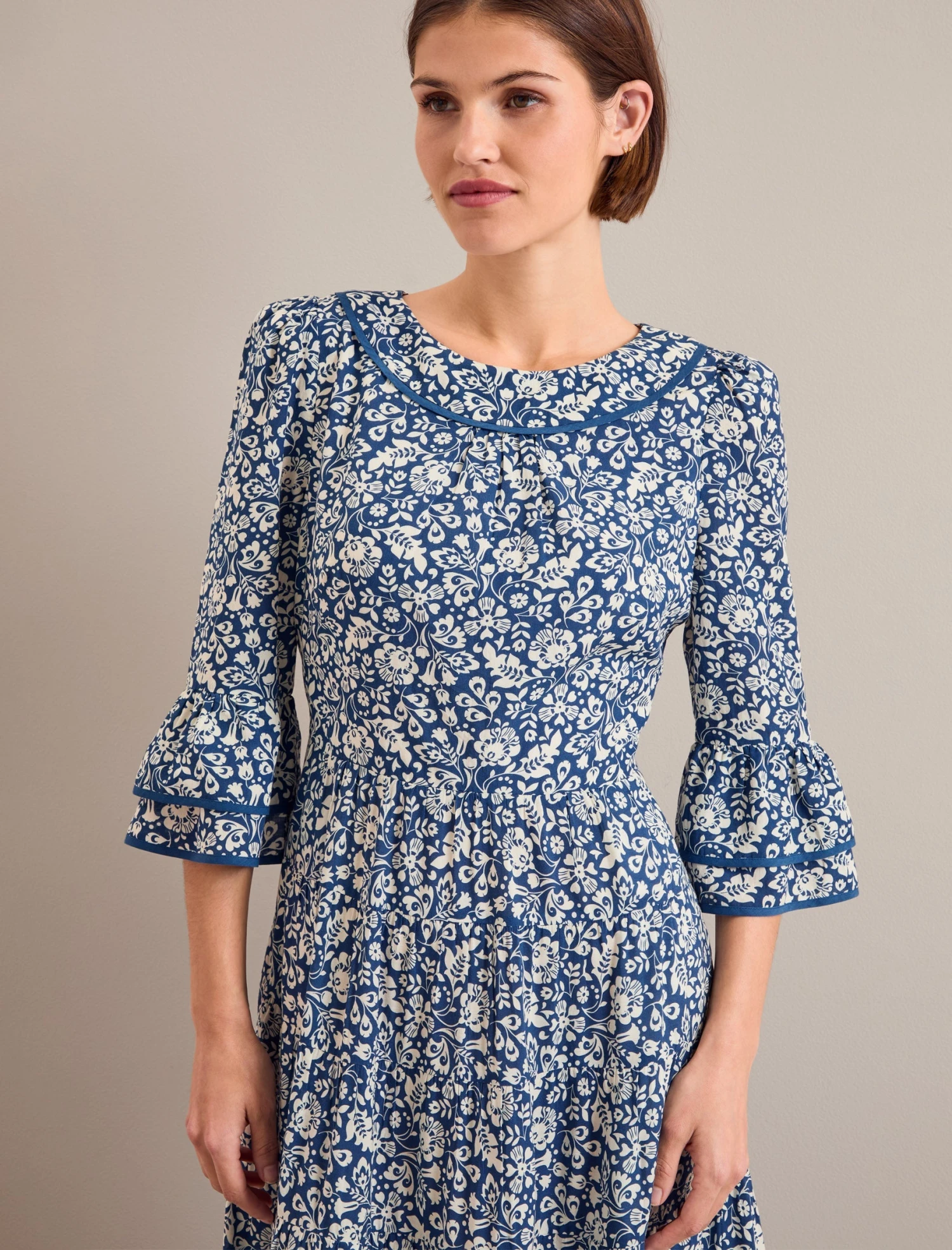 Our sell-out Elodie is back in two fresh new florals to take you through late summer into autumn and beyond. Designed in a soft, drapey cotton viscose voile that is beautifully cool and light to wear with a super flattering silhouette, this is a dress you will reach for time and time again. Style with a heel, boot or box-fresh trainer and wear on repeat.