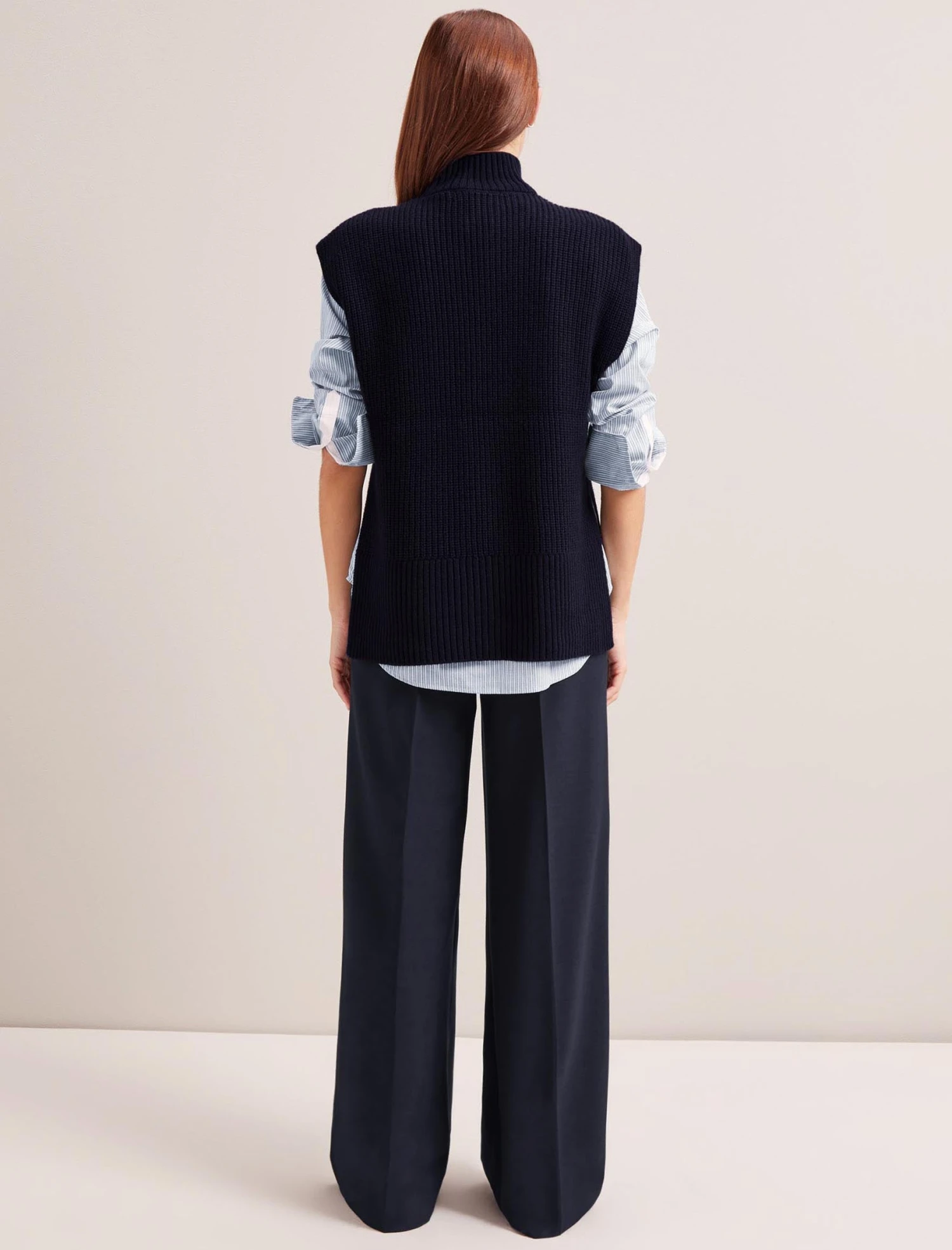 Our hero Janice sleeveless jumper is the ultimate on-trend solution for keeping warm. Knitted in a machine-washable merino wool blend, it layers perfectly over a dress, jumpsuit, blouse or shirt without hiding a pretty sleeve, making it an endlessly wearable transeasonal piece.