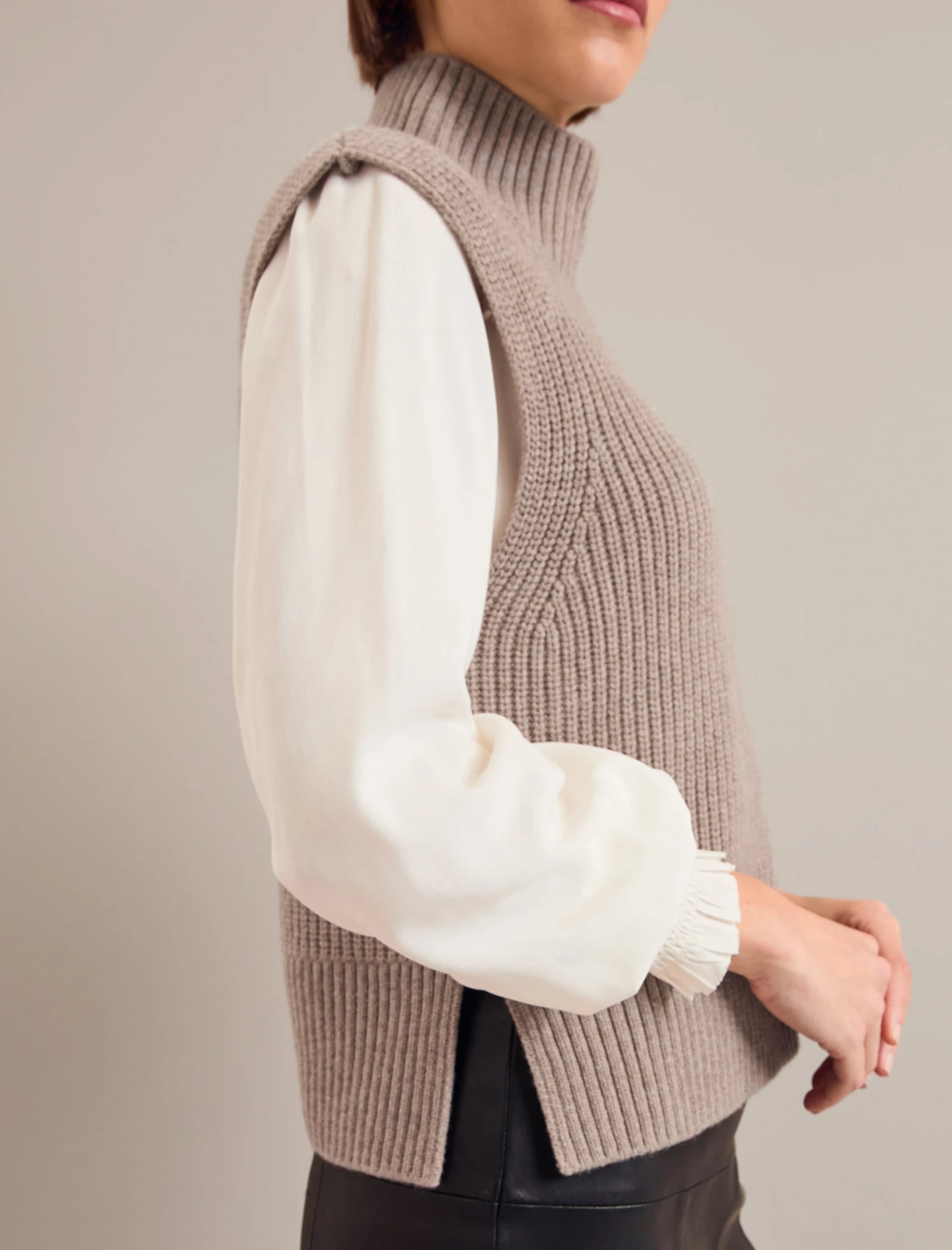 Janie is a more fitted, shorter version of our iconic Janice sleeveless knit and has proved just as popular. Designed in a cashmere-blend knit that gives it a luxe softness that won’t pill, it’s perfect worn alone or over a shirt, long-sleeved tee or dress.Â