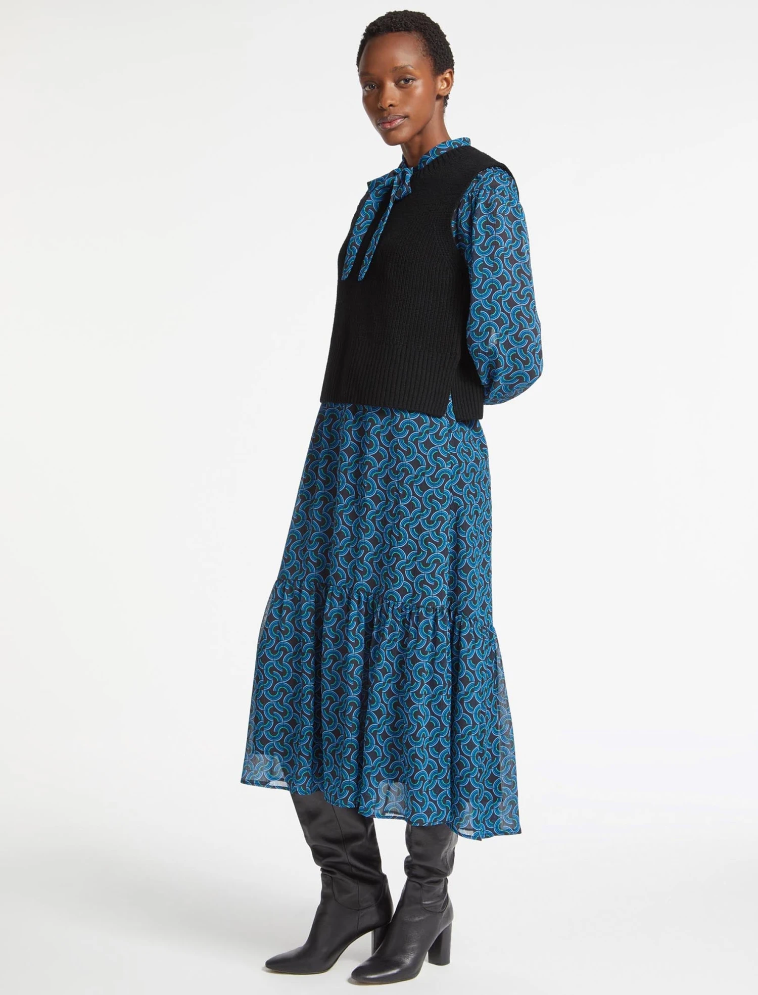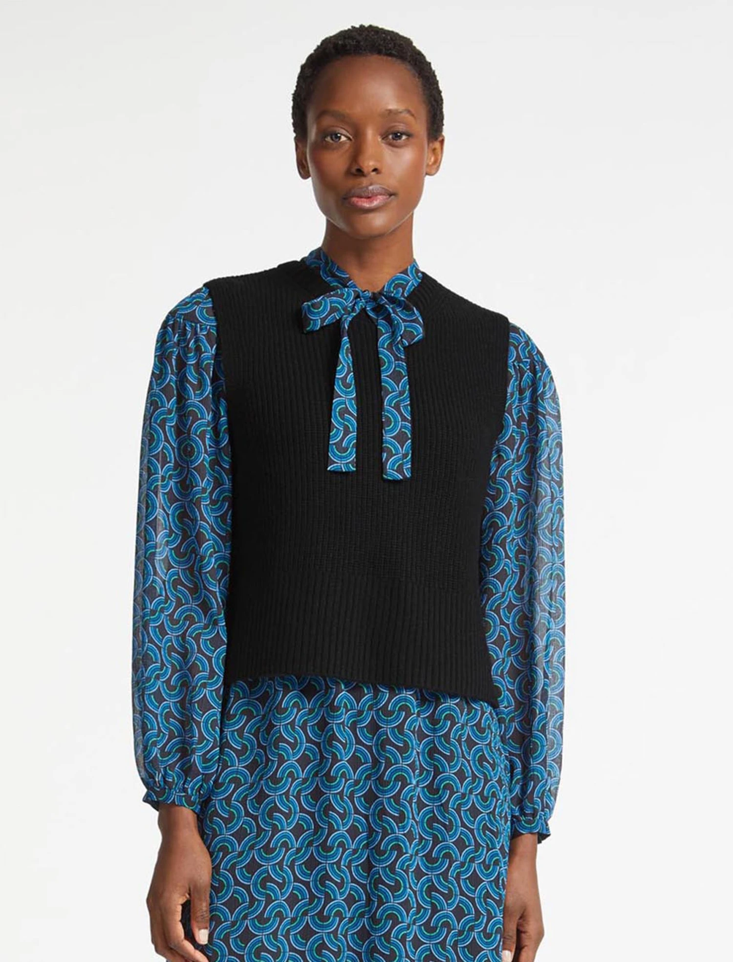 Our bestselling Janie sleeveless knit neatly combines wearable ease, versatility and style. A brilliant layering piece, the fully fashioned armholes ensure it sits snugly over any sleeve – whether a tailored shirt, silk blouse or dress – and under a blazer on chillier days.