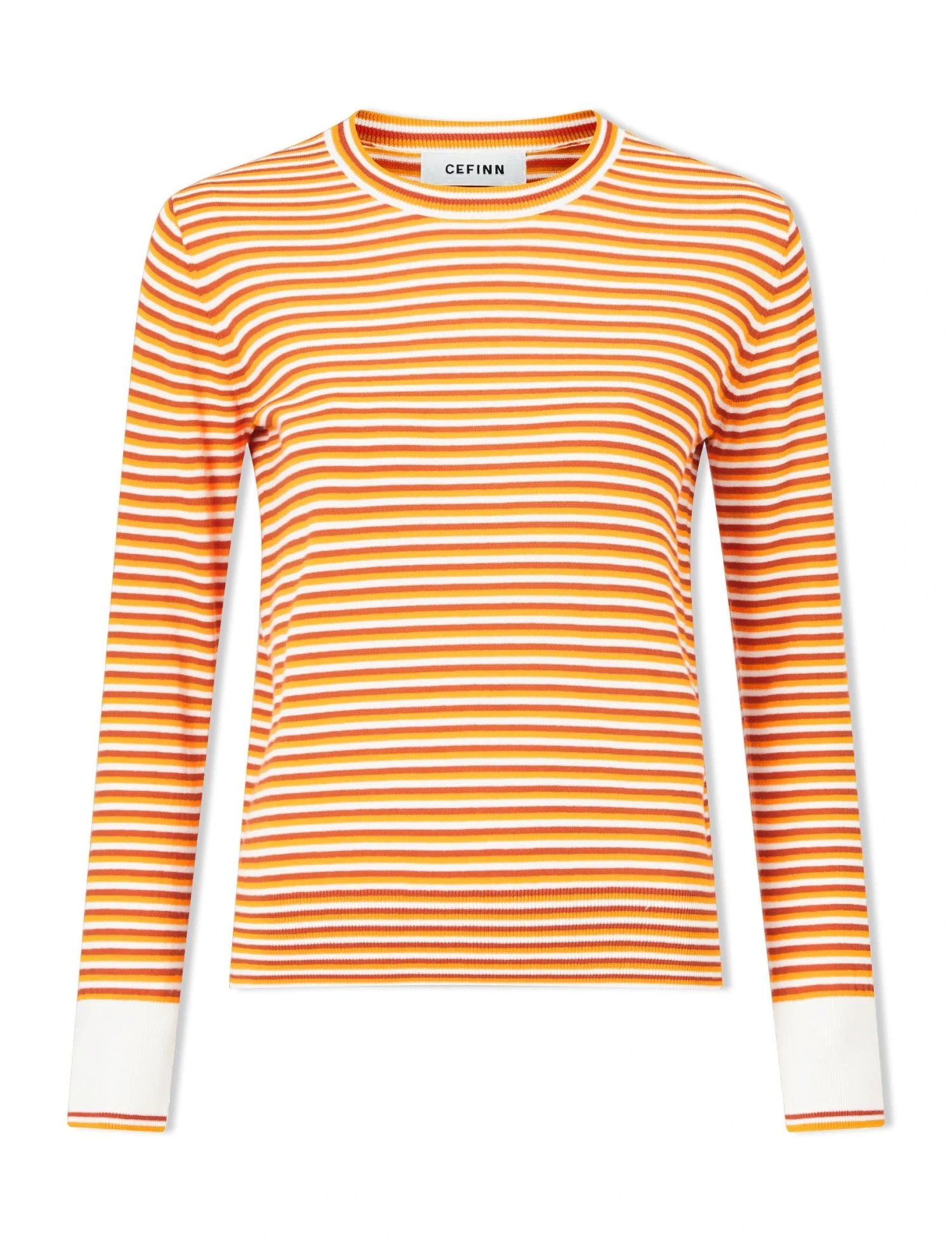 Lightweight knits are a British summer must-have and our best-selling Jodi is an elevated take on a classic crew neck. Knitted in a soft cotton-merino blend stripe with contrast cuff, it’s timelessly chic and endlessly versatile. Wear it casually with denim or dress it up with a tailored trouser, under a blazer or with a leather skirt – this season’s Teal and Orange versions pair perfectly with the Tiana and Sierra.