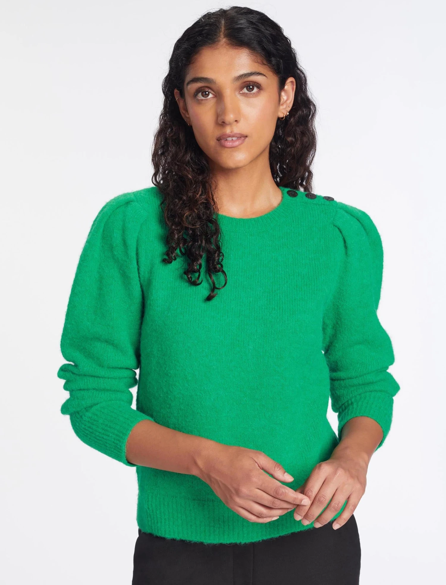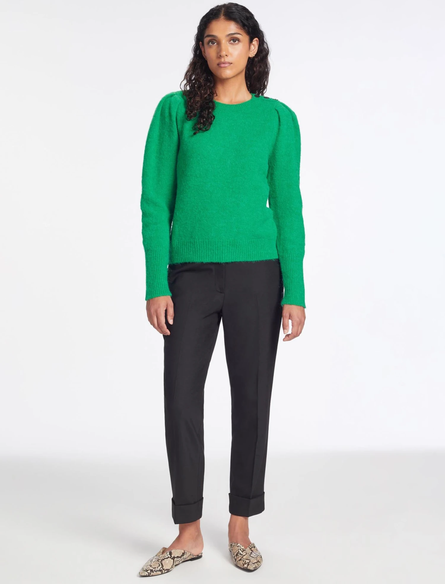Designed in alpaca wool, Joss will be your favourite wardrobe go-to this autumn. Highlights include our signature blouson sleeves and a summary shoulder detail that elevates it from simple to smart. You can count on Joss to turn on her sophisticated charms when paired with a tailored trouser or our Tiana leather skirt and pointy heel, but also be your dependable friend with a jean and trainer. What more could you ask for?