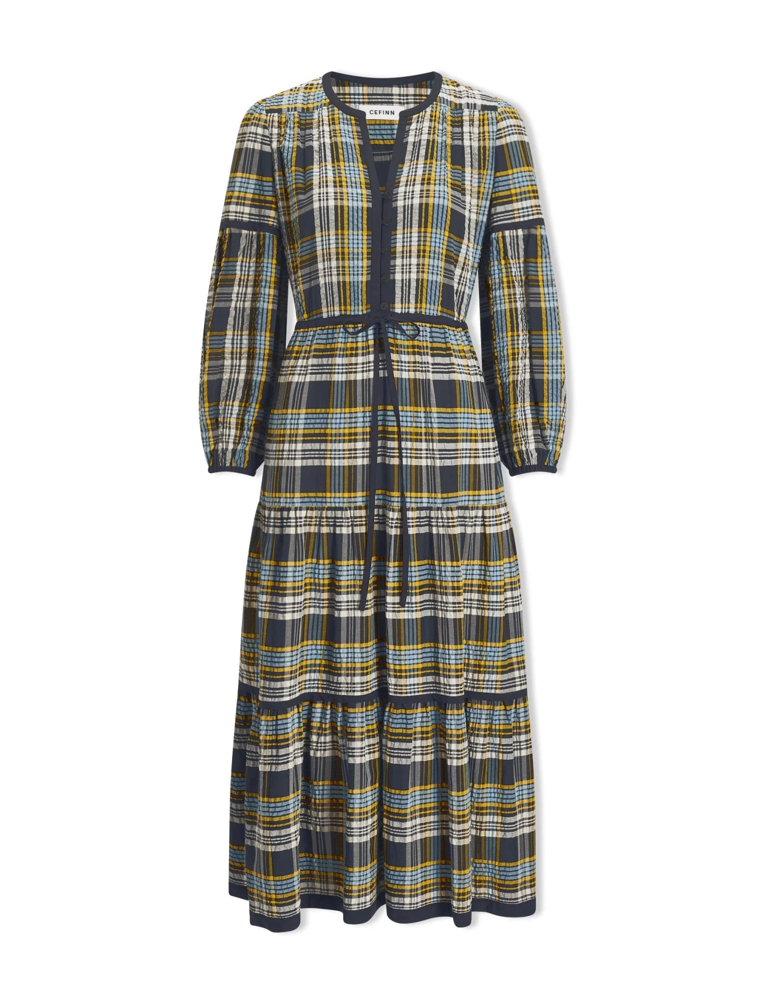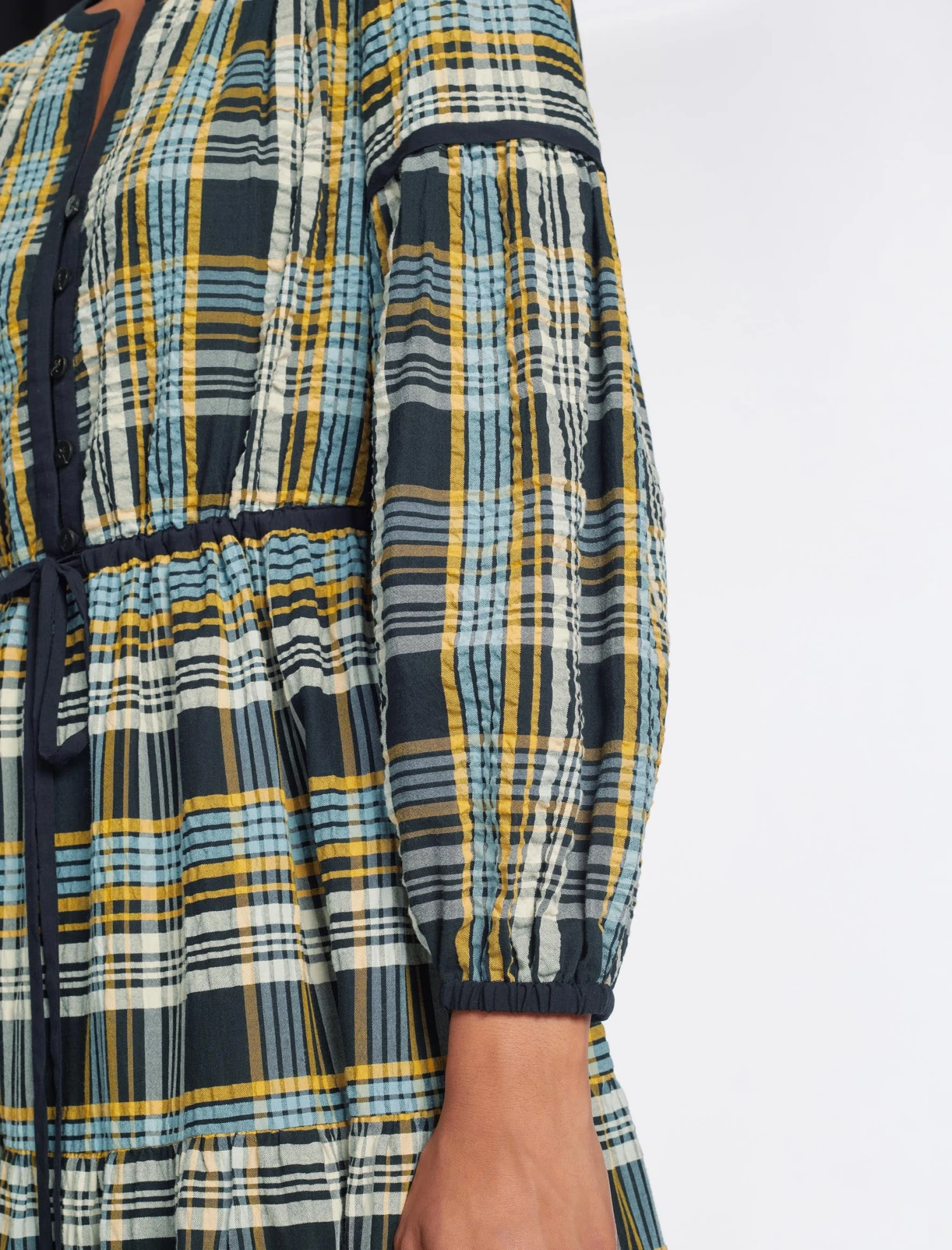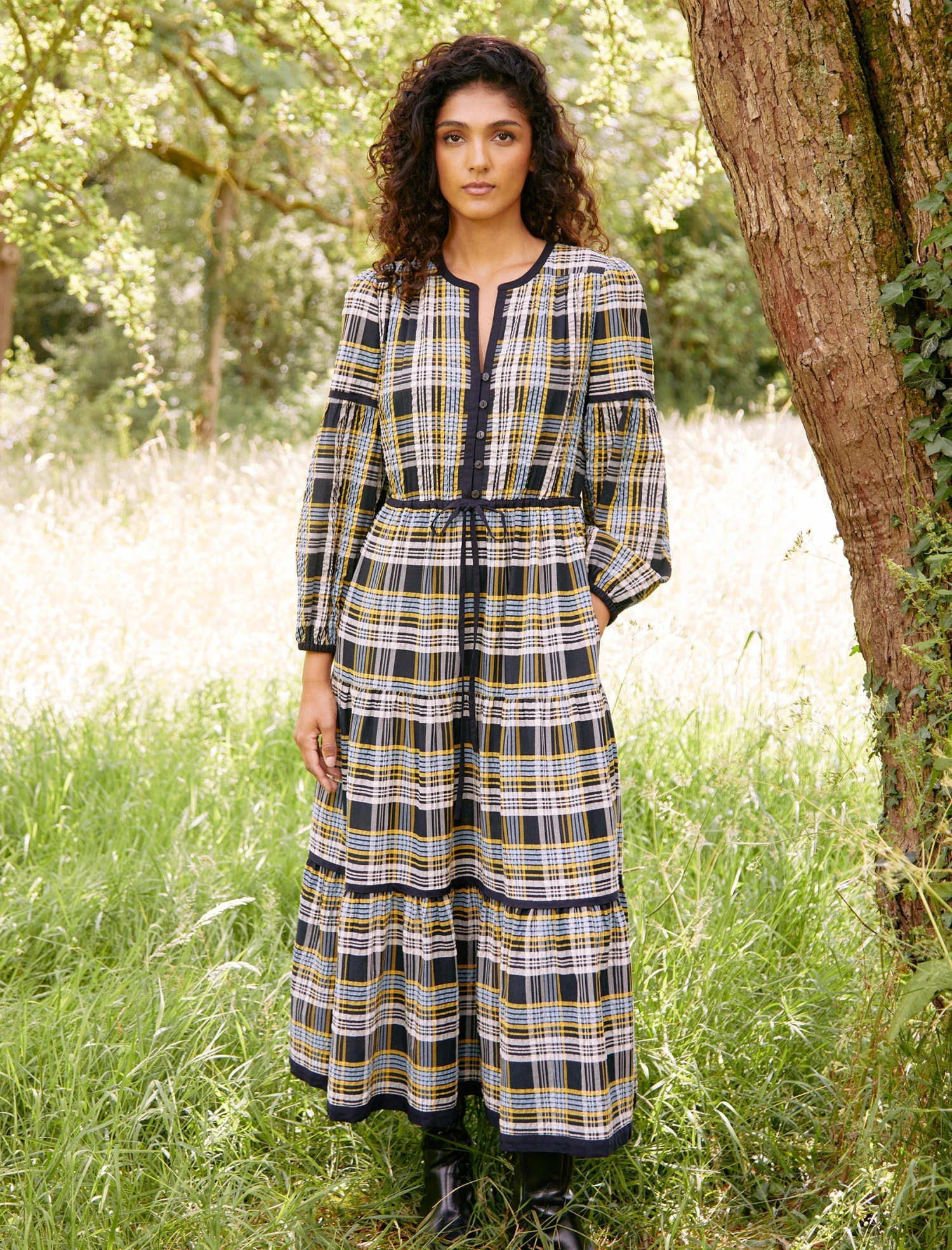 Nodding to classic Scandi styles, our navy and yellow check Katie dress has blouson sleeves, a drawstring waist and tiered skirt that lend it a sense of ease and nonchalance. A dream trans-seasonal dress for runaround days, it’s cut from organic cotton, meaning it not only feels good to wear but also feels good for the planet. Win-win.