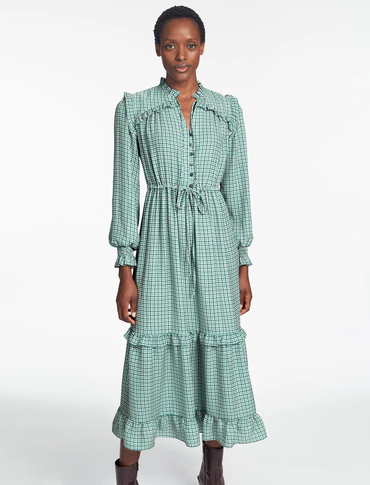 We know time is often of the essence, so we’ve reworked our bestselling Loretta dress in machine-washable recycled hammered crepe. Also, new for Spring 2024, the drawstring waist makes it effortlessly easy to wear, while the additional rouleaux summarys add to its feminine charms. Ideal for navigating those tricky mid-season months, wear with a sharp ankle boot and tights on colder days.