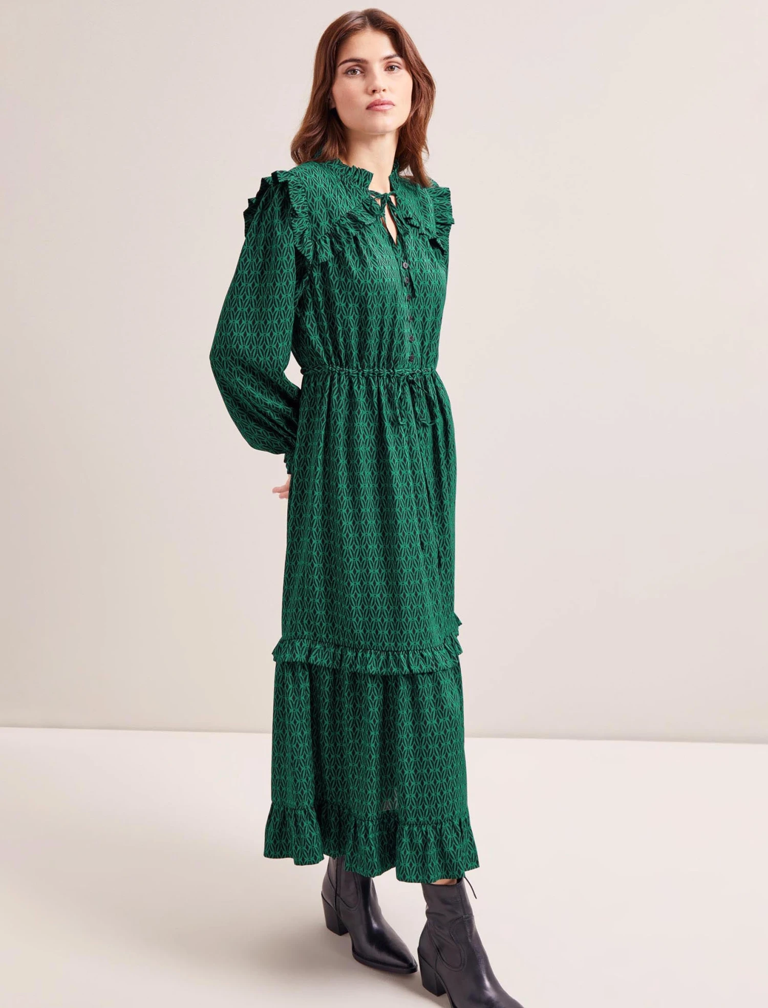 We know time is often of the essence, so we’ve reworked our bestselling Loretta dress in machine-washable recycled hammered crepe. Also, new for Spring 2024, the drawstring waist makes it effortlessly easy to wear, while the additional rouleaux summarys add to its feminine charms. Ideal for navigating those tricky mid-season months, wear with a sharp ankle boot and tights on colder days.