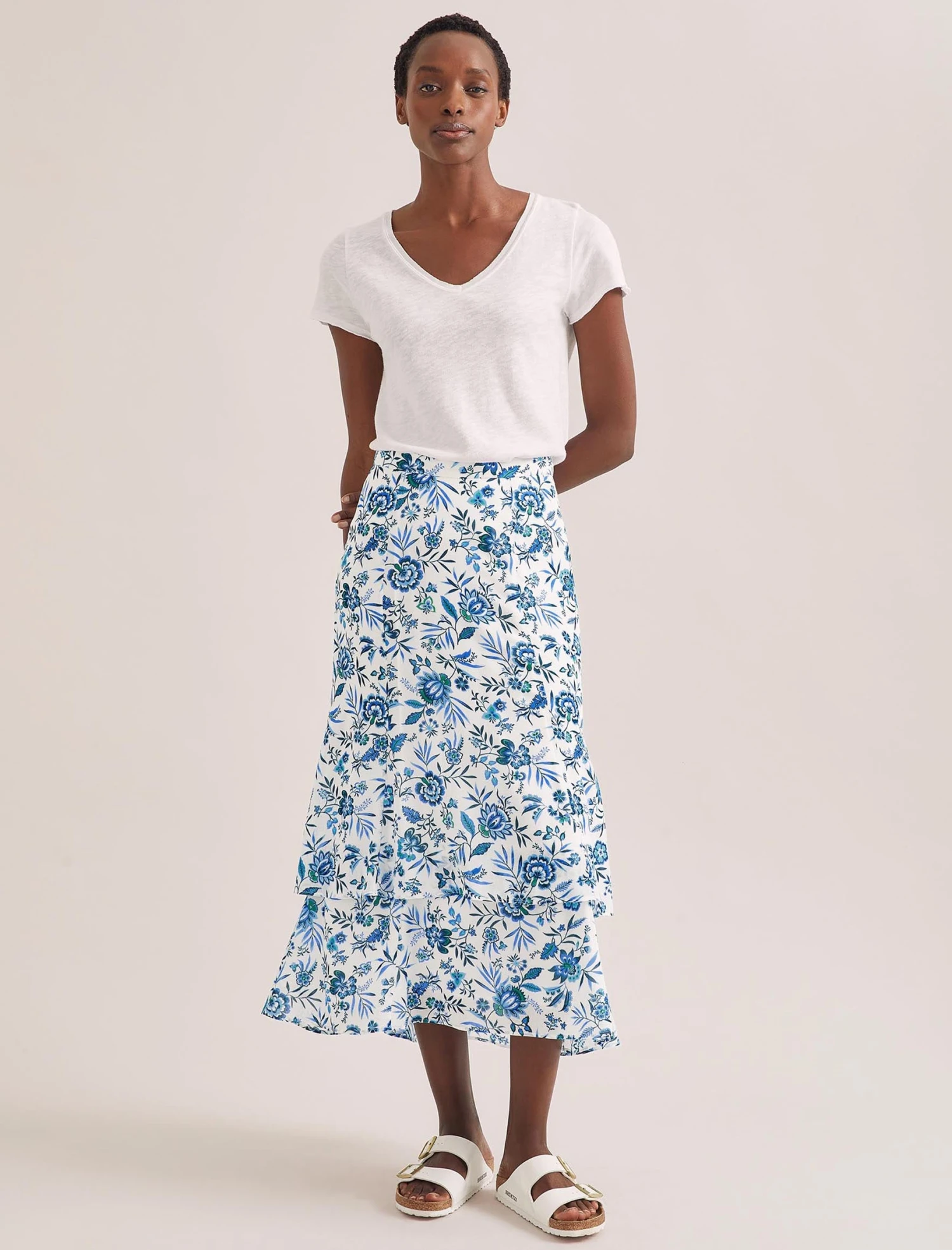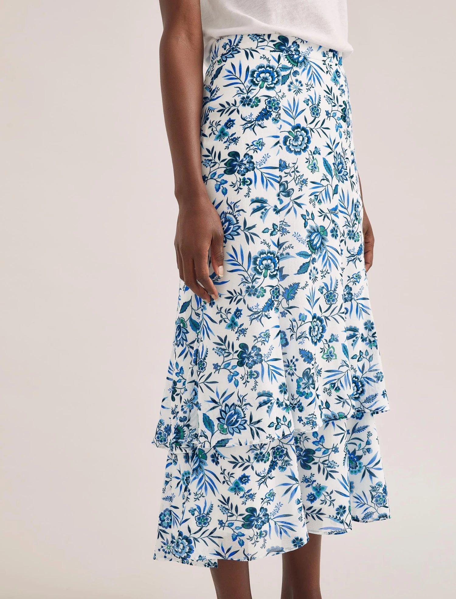 No summer wardrobe is complete without a floaty floral skirt. The Lotta has an elegant, fluted silhouette with feminine tiers and a dipped hem, so it moves beautifully as you walk. Style for warm weather with a crisp white tee or sleeveless knit, pairing with cashmere on cooler days.