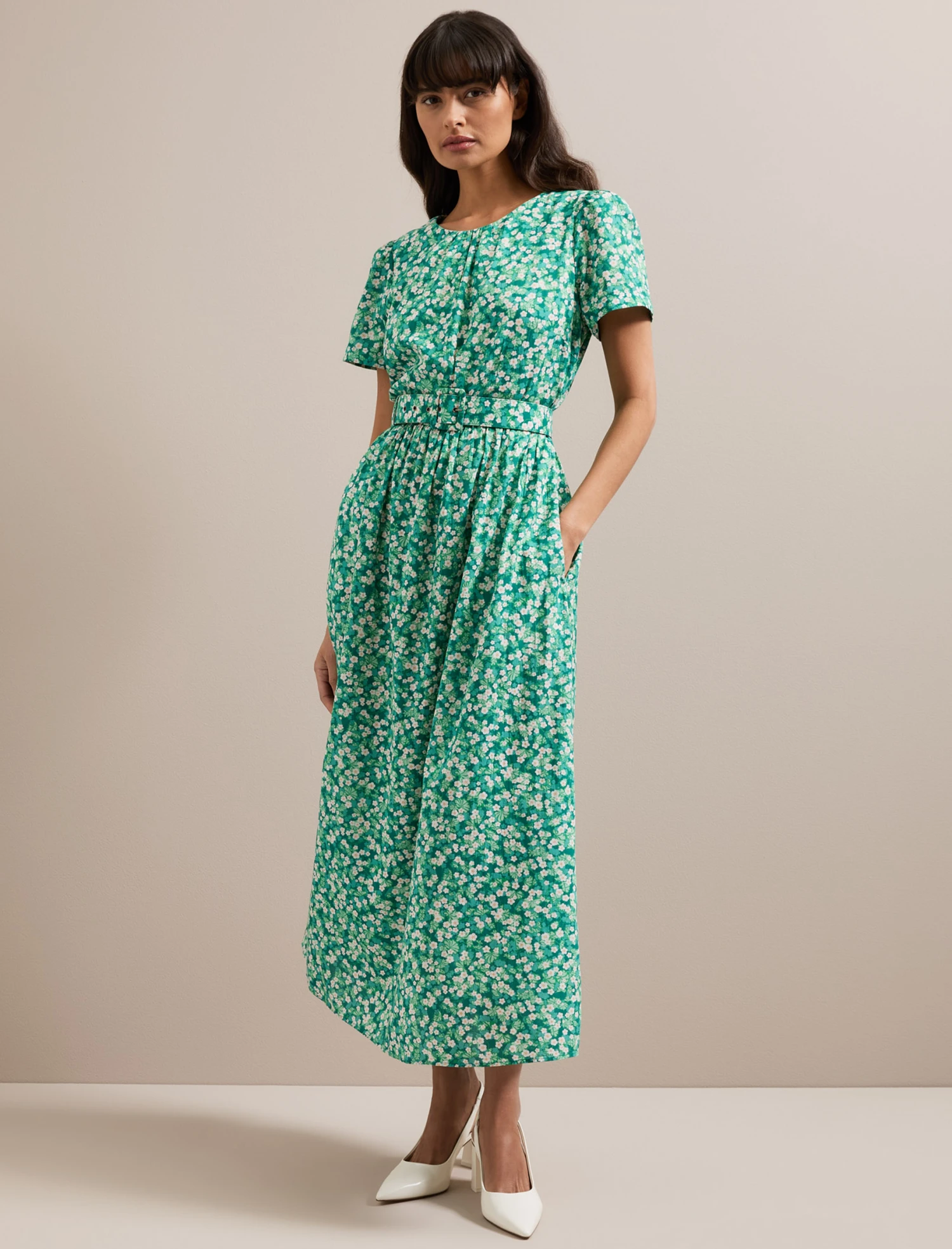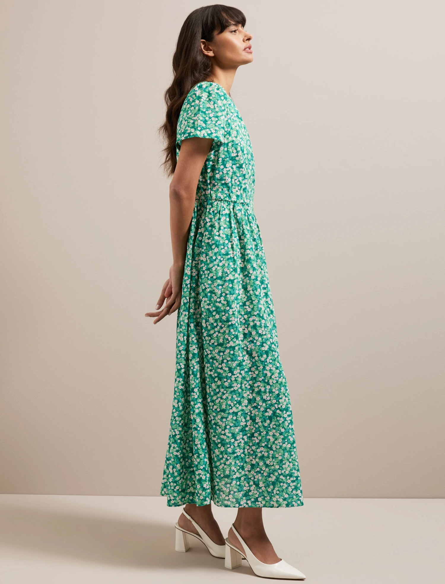 A failsafe for smarter summer dressing, Nina has a gently fitted bodice that falls to a loose waist with a long, gathered skirt that makes it so easy to wear. Cut in a beautiful drapey cotton viscose voile, this season it comes in the prettiest micro blossom, our exclusive in-house designed print. Cinch in with the removeable belt, swap out for one of your own or wear lose for easy breezy elegance.