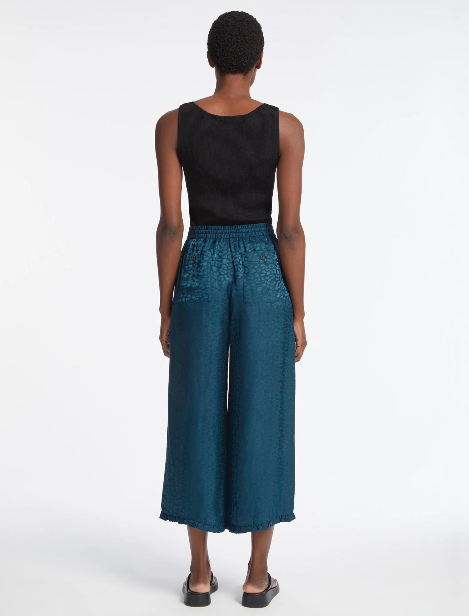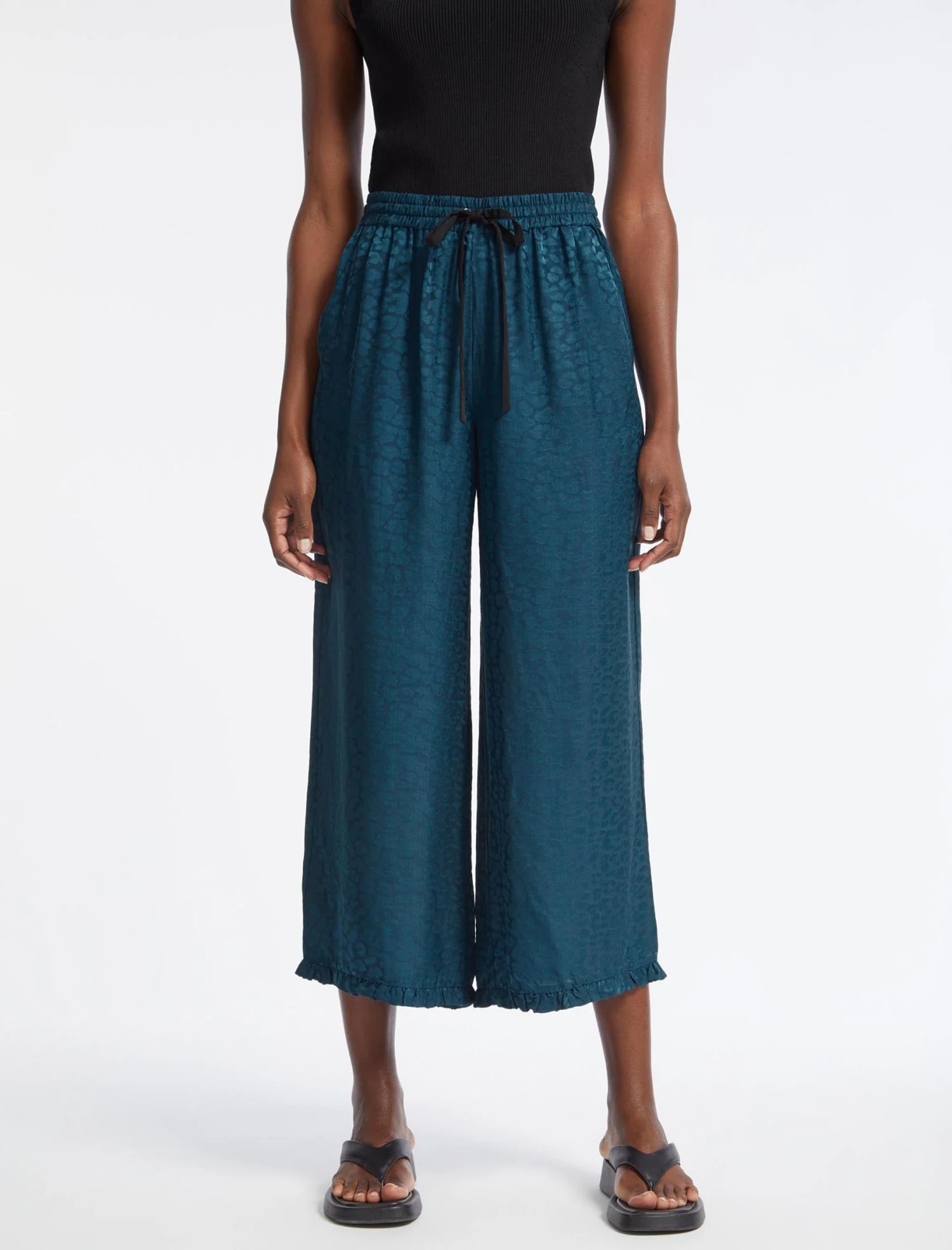 Pyjama dressing has never looked so appealing. Whether you’re staying in or going out, our Rosa wide-leg trouser combines everyday ease – thanks to the elasticated drawstring waist, wide-leg cut and side pockets – with the boho glamour of our silk blend jacquard. Best worn with our matching Rosa blouse and a heel or a white trainer for the day time. Dreamy.