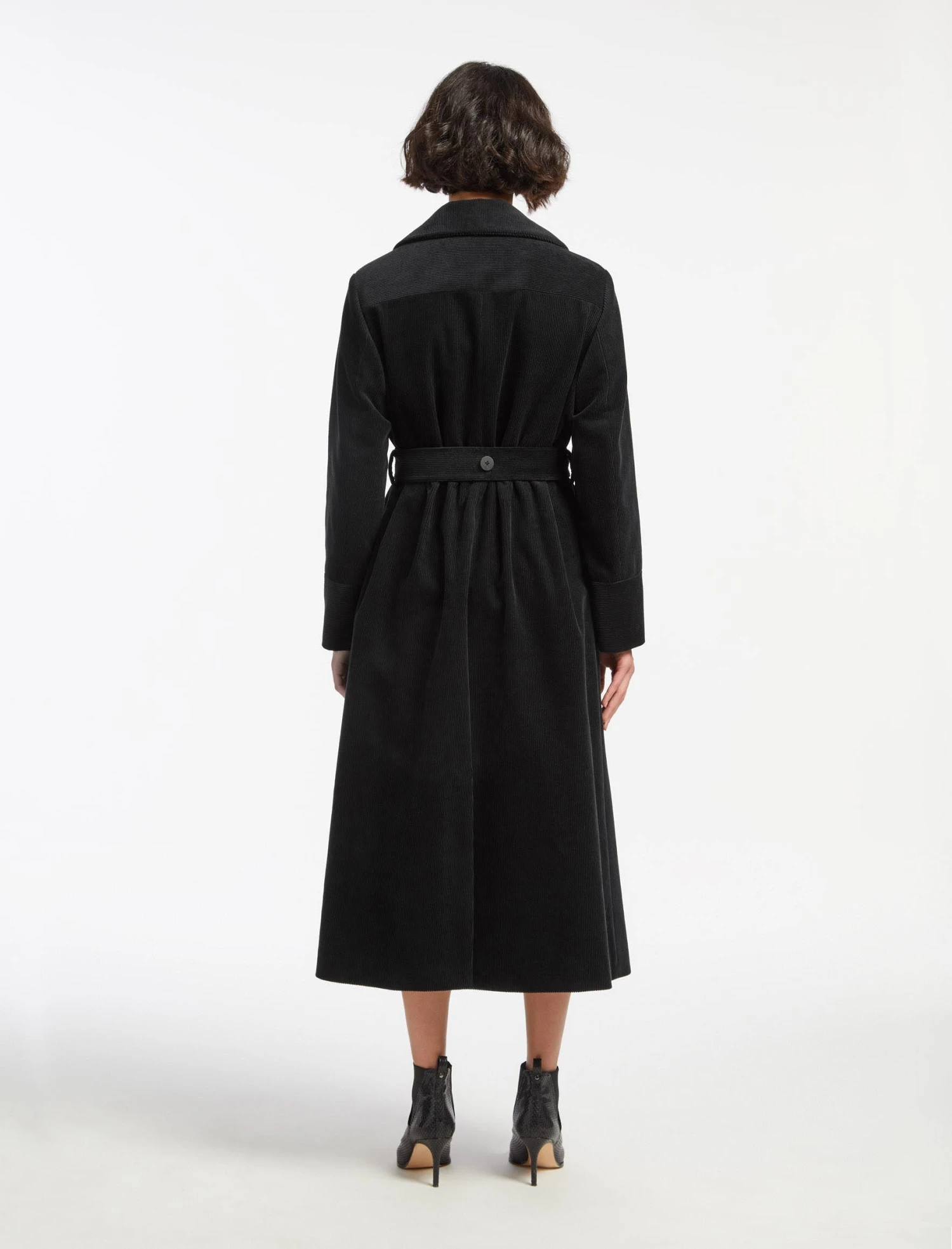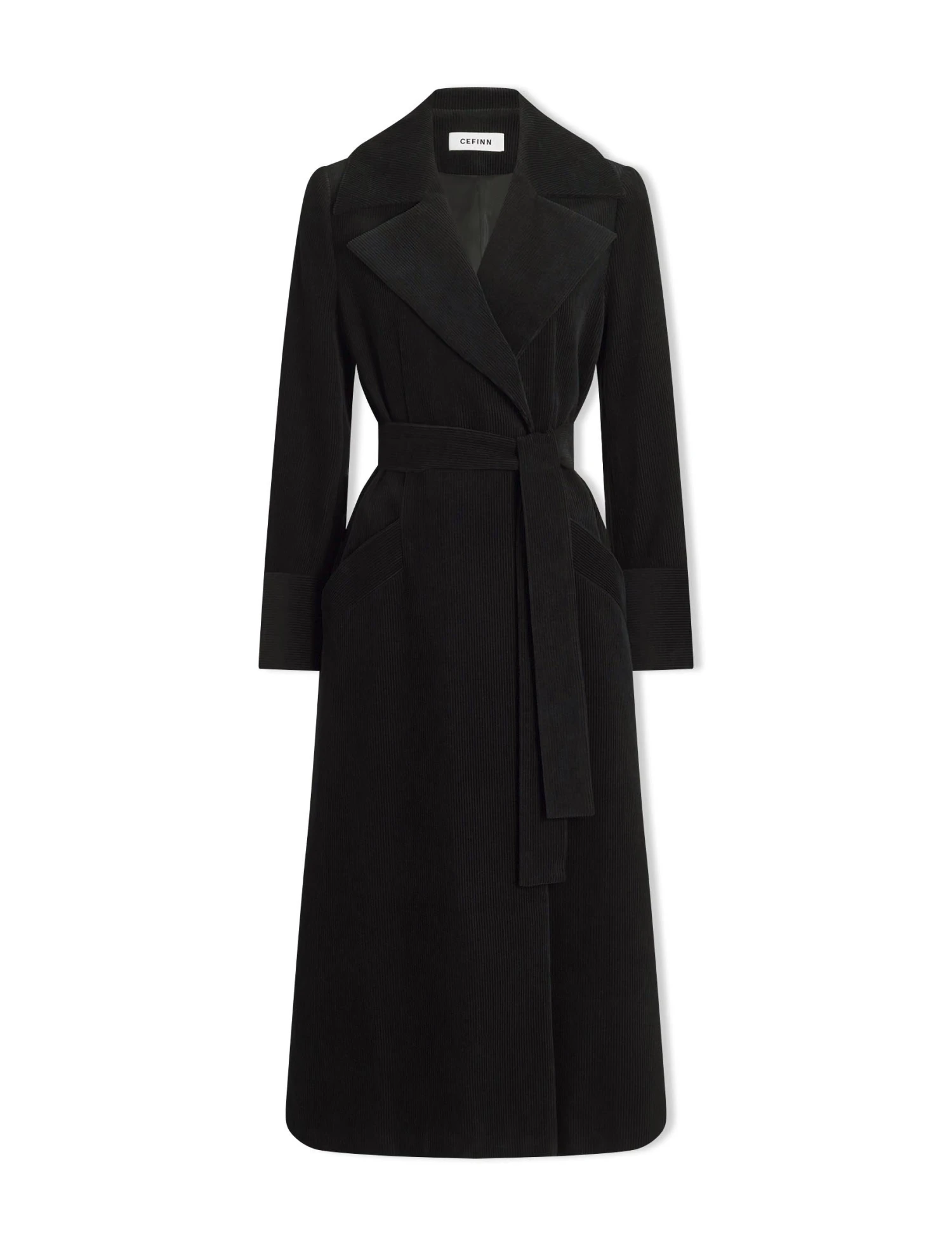 Introducing our latest Roxanne coat, perfectly tailored for the season. Crafted from a jumbo corduroy in a convenient wrap style, it features spacious pockets and a waist-defining belt. With its full-length silhouette, you can elevate your look with sleek winter boots or embrace a more relaxed vibe with causal footwear.