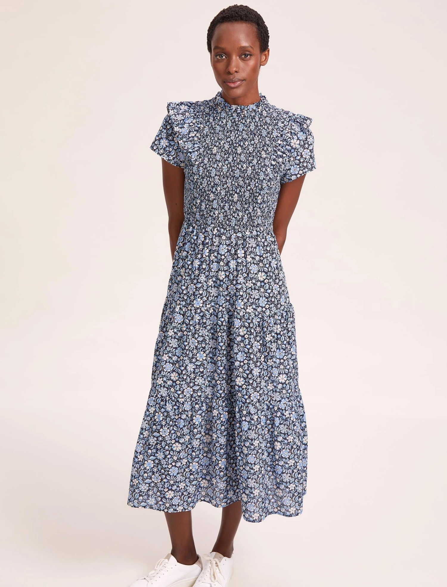 Sabrina is a seriously pretty addition to your day-to-evening outfit repertoire and was a sell-out last summer. Designed in an airy cotton viscose voile featuring our exclusive ditsy carnation print, the shirred bodice, frilled sleeve and flattering tiered skirt encapsulate summer femininity. Perfect for a garden party or Wimbledon, it can also be dressed down with a white trainer or sandals for daytime wearability.