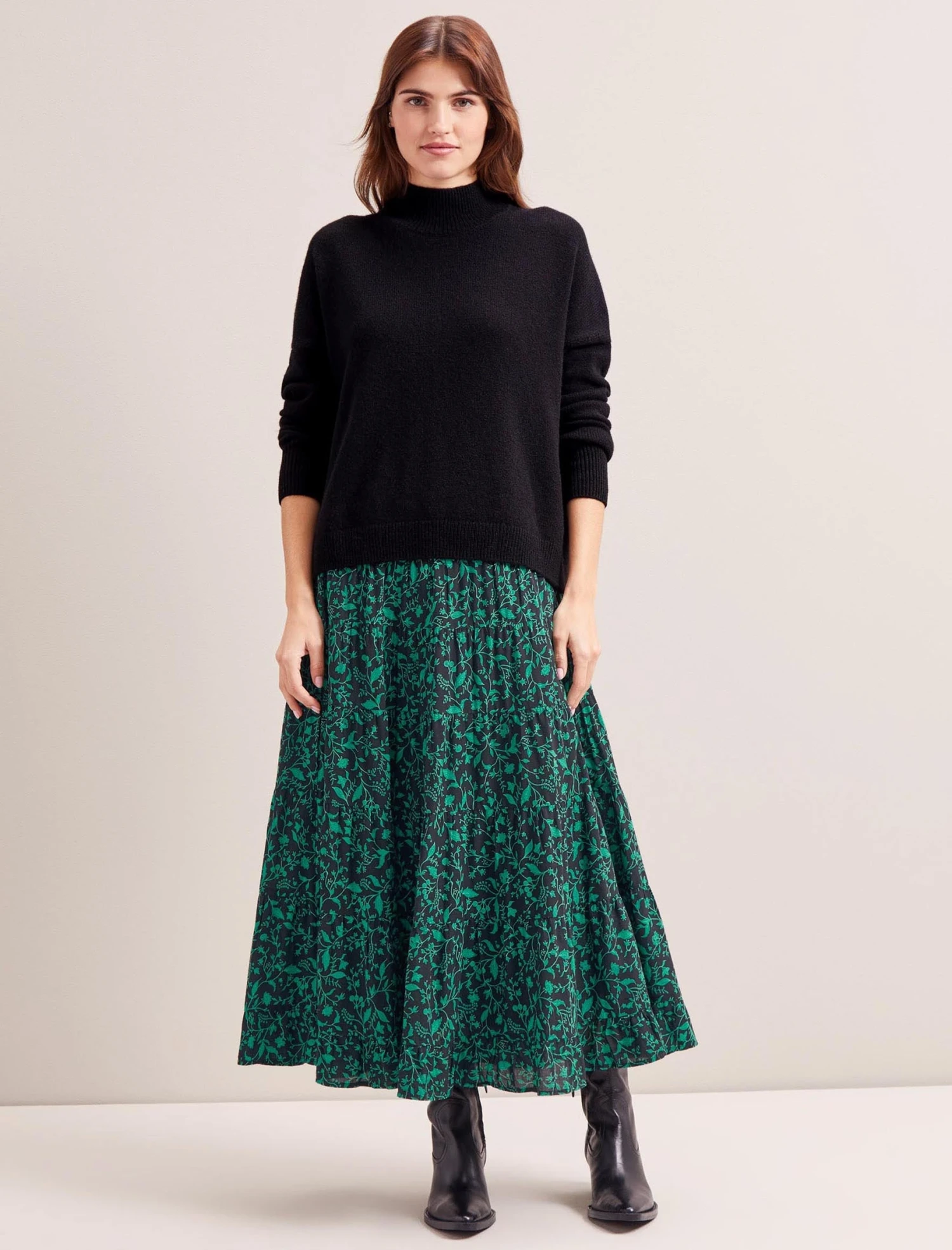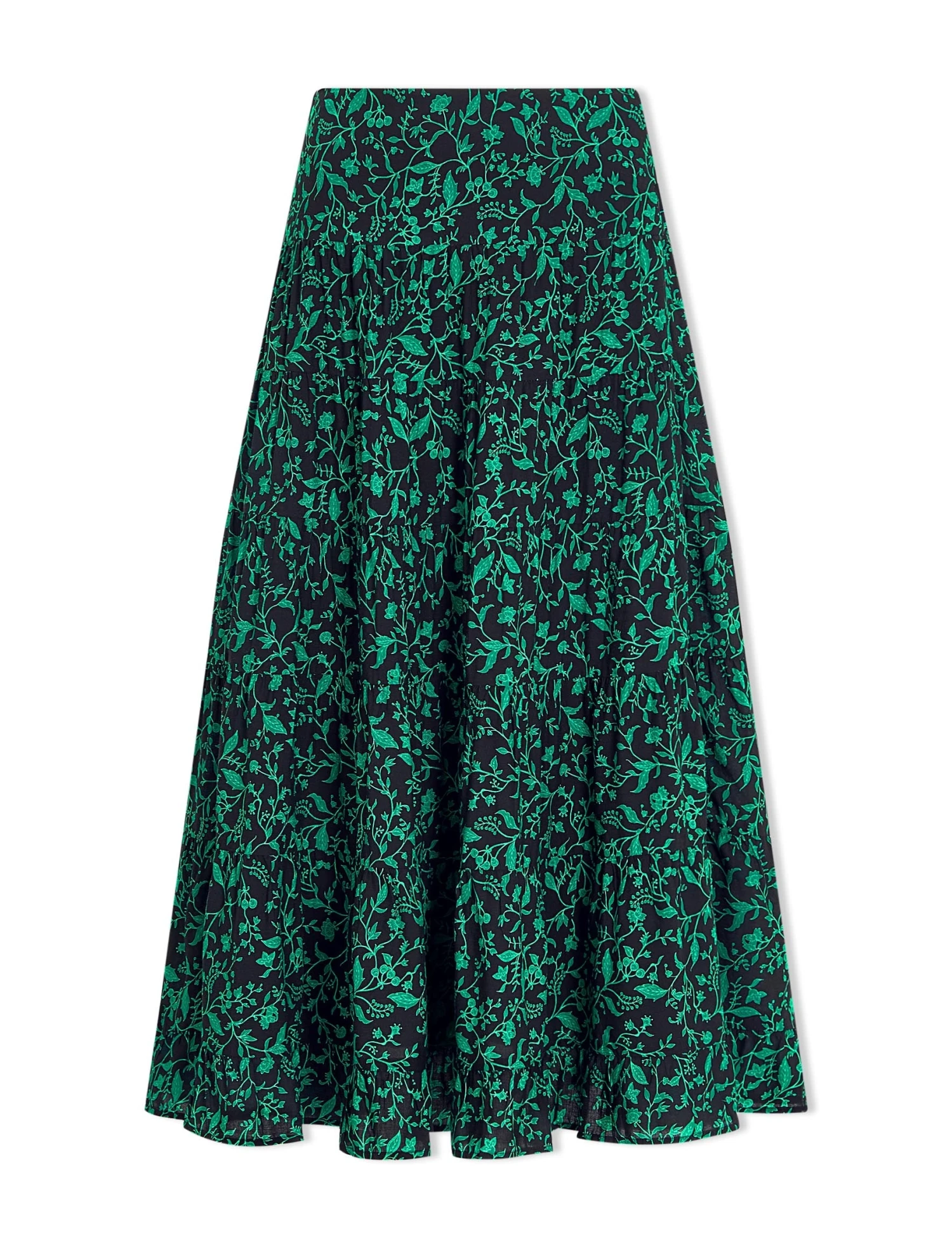 A swishy skirt instantly makes you feel pulled together, even on the dreariest of winter days. Designed in soft cotton voile, which gives it its shape and drape, our bramble-print Sawyer skirt is just the ticket. Slip on with a knit, and a trainer or long boot, for a day at the museum or a cosy pub lunch. Come the evening? Our classic Winona waistcoat and structured velvet blazer offset the fullness of the skirt.