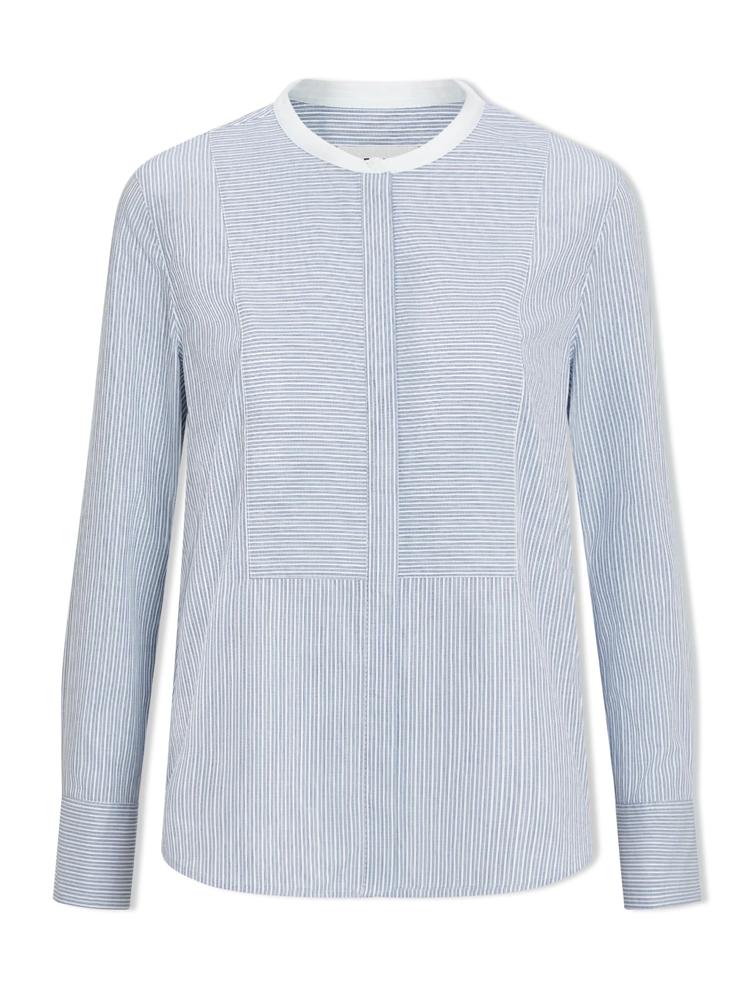 There’s a plain-speaking chic about the season’s most wearable looks. Take our Sefton organic cotton striped shirt. Worn with baggy blue denim and a trench coat it may look simple but on closer inspection, superior details such as the placket sleeve and bib elevate it from basic to boardroom ready.