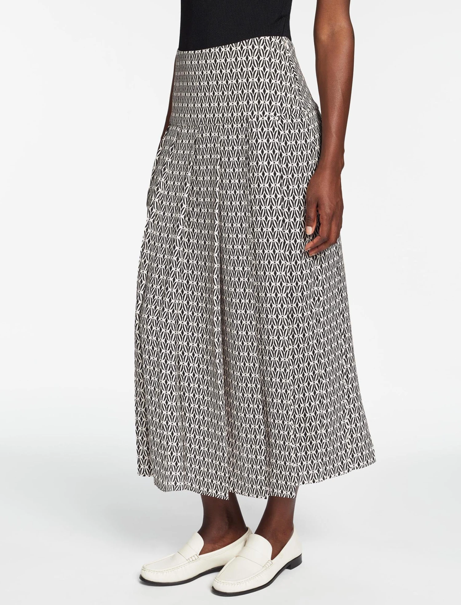 We’ve brought back our favourite Sienna skirt for Spring 2024 in a new recycled hammered crepe printed with our Trellis pattern. Not only is it machine-washable, but the permanent pleats mean there’s no need to iron it. Win-win. A versatile skirt for any time of the day, week or year, colour-match it with our new Johanna and Colette knits or Maia T-shirt.