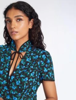 Irina Bias Cut Maxi Dress – Black Multi Tropical Floral Print