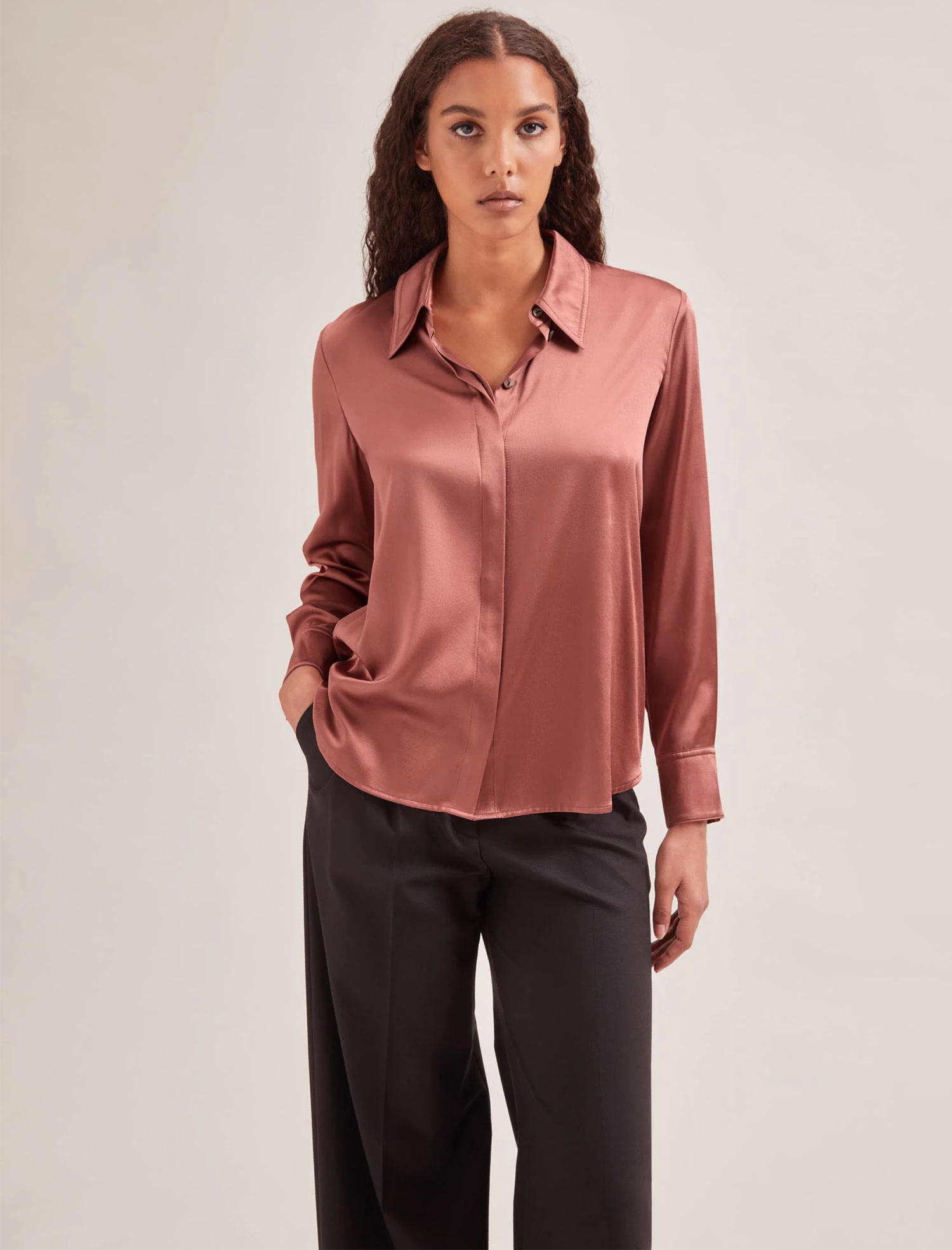 Who doesn’t love the cool elegance of a silk-satin shirt? We’ve revisited Skyla for spring in two sumptuous hues that will instantly brighten up your look (and your mood). A chic spin on a classic style, the overstitching and dartless design elevate it for day-to-night wear. Simply team with a navy or grey tailored trouser or our Arlo leather skirt for a seriously luxe finish.