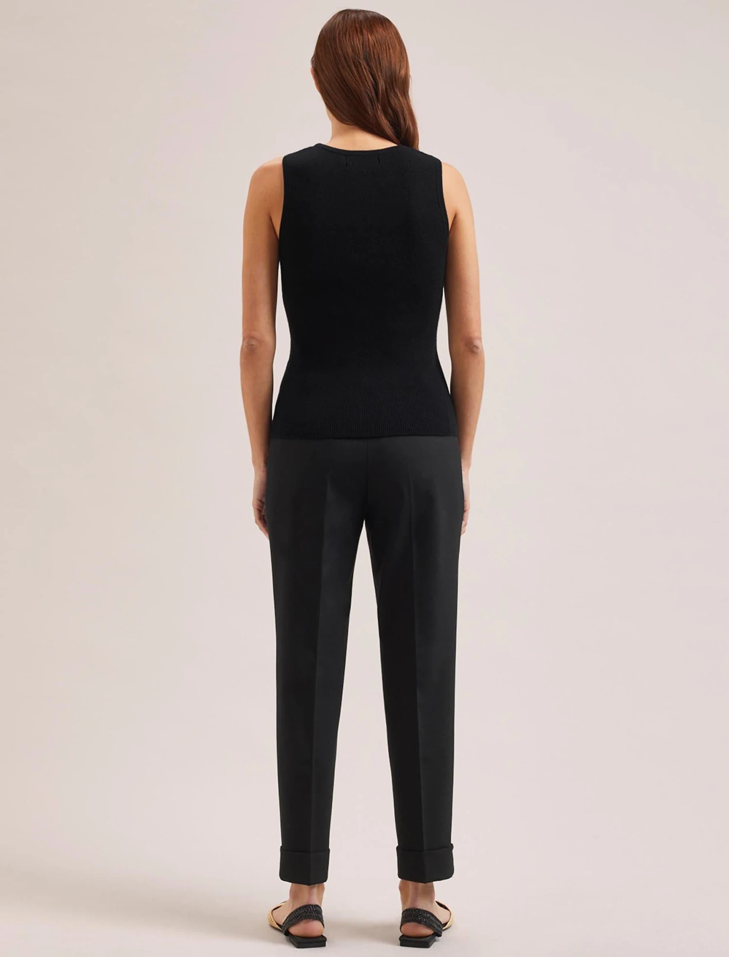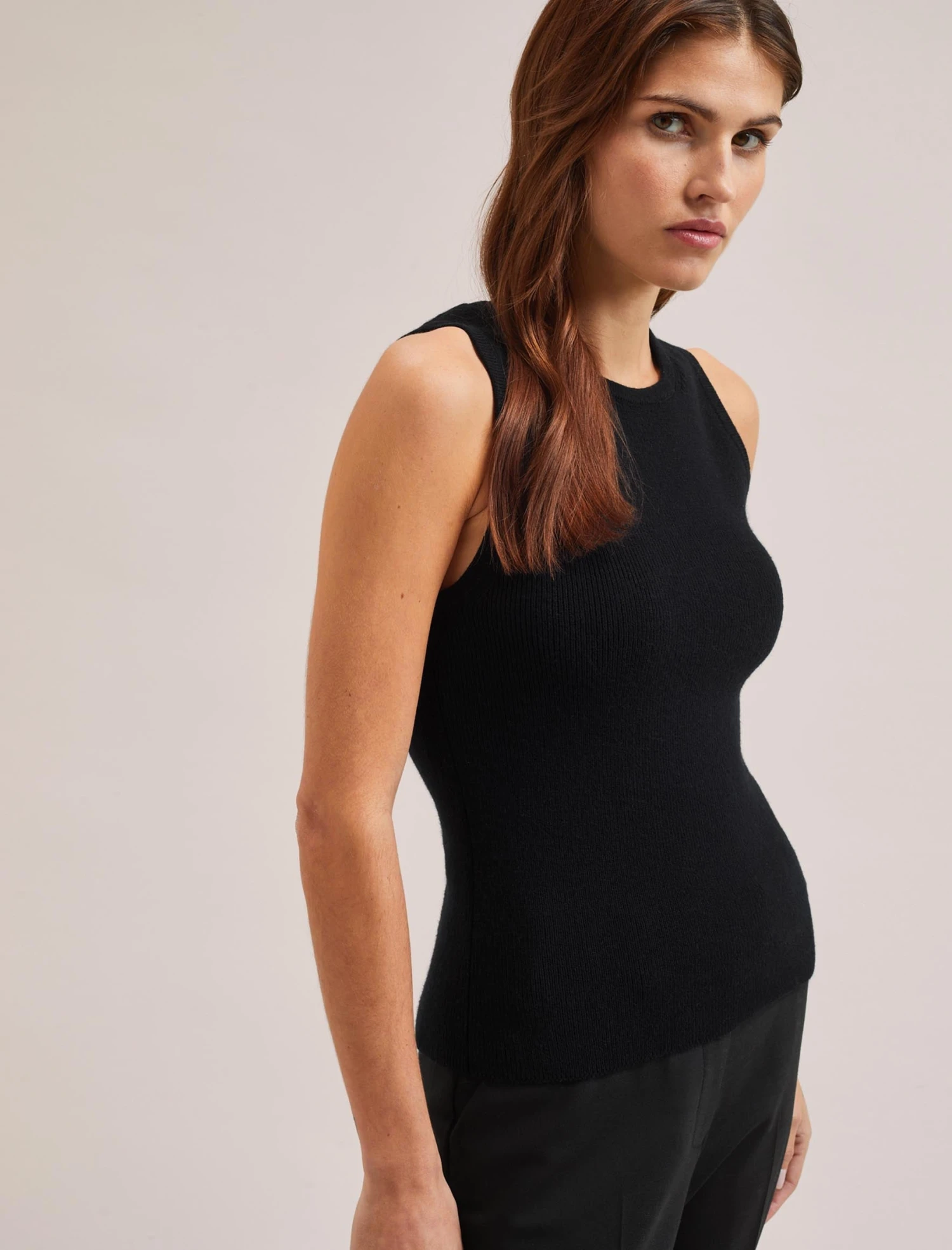 Cut in a cotton merino blend rib, Tammy has a structured quality which keeps it looking smooth and smart with no show-through. Great on its own or under a jacket, this is an essential styling solution for sultry summer days.