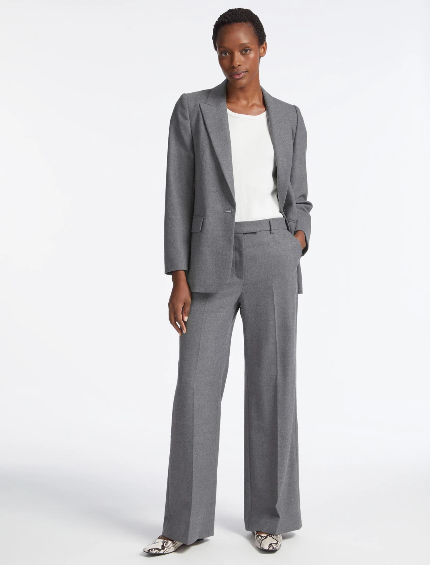 Give your workwear a style promotion with our so-now wide-legged Terence trouser. Cut from a wool blend with added stretch, it sits high on the waist for a leg-lengthening fit. Wear with the matching Jordan wool blazer when you’re ready to get down to business. It works equally as well with a trainer and T-shirt on more relaxed days.