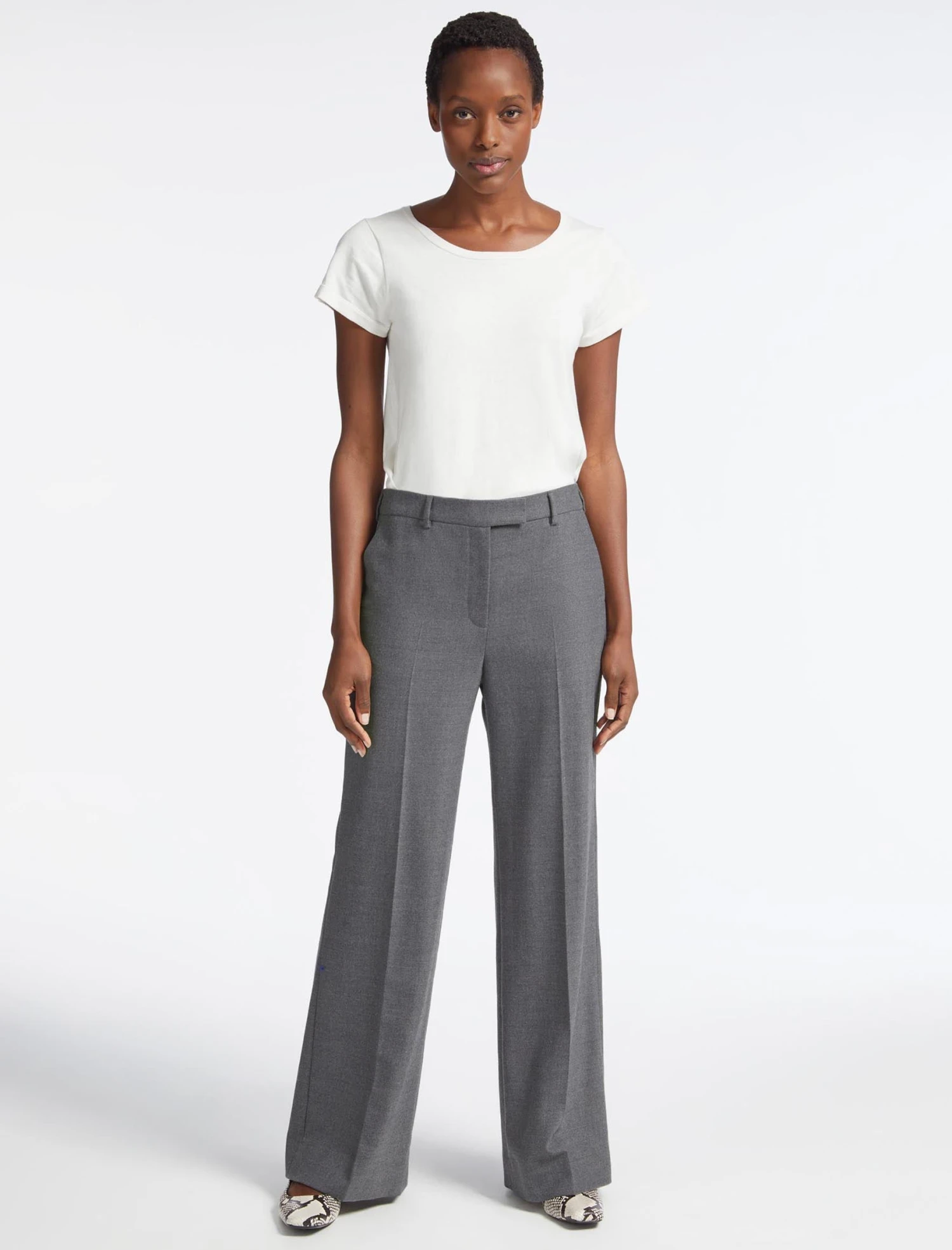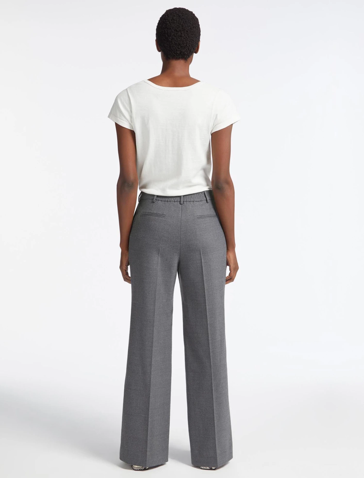 - High waisted, wide leg trouser in wool blend