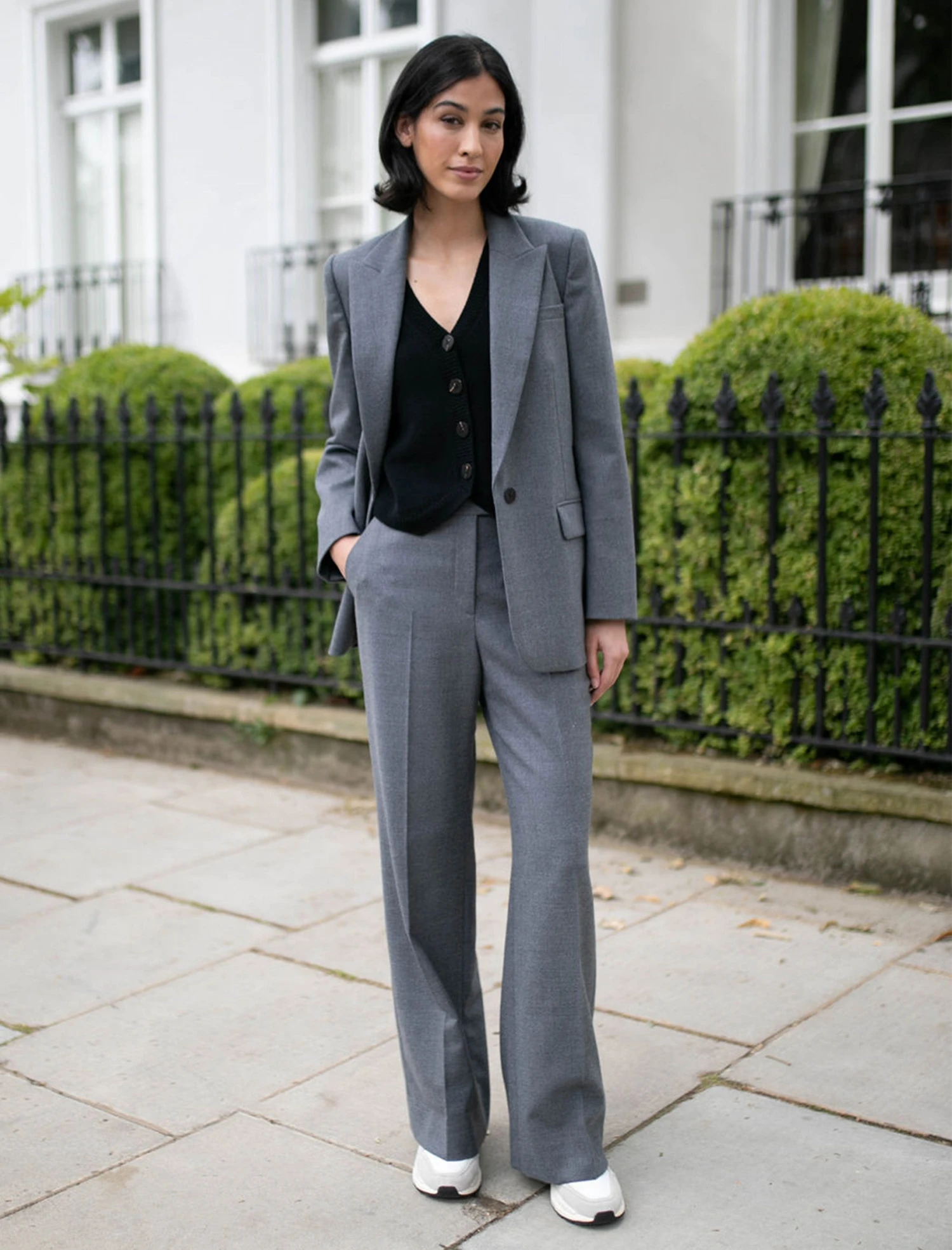 - Composition:Â Winter Stretch Suiting, 54% Polyester 45% Wool 1% Elastane