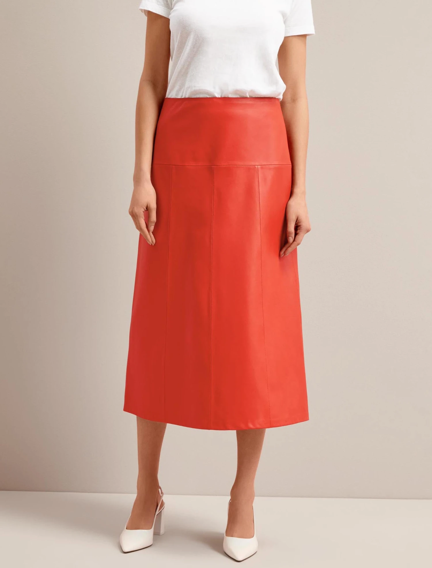 The Tiana skirt has earned iconic status in the Cefinn collection and with good reason. Bordering somewhere between pencil and A-line, its a sexy and seriously flattering shape and the butter-soft leather looks great when contrasted with pretty much anything from luxe silk and cashmere to crisp cotton, giving it year-round versatility. This season’s bold Orange works brilliantly with a simple white tee and coordinates with several of our summer knits.