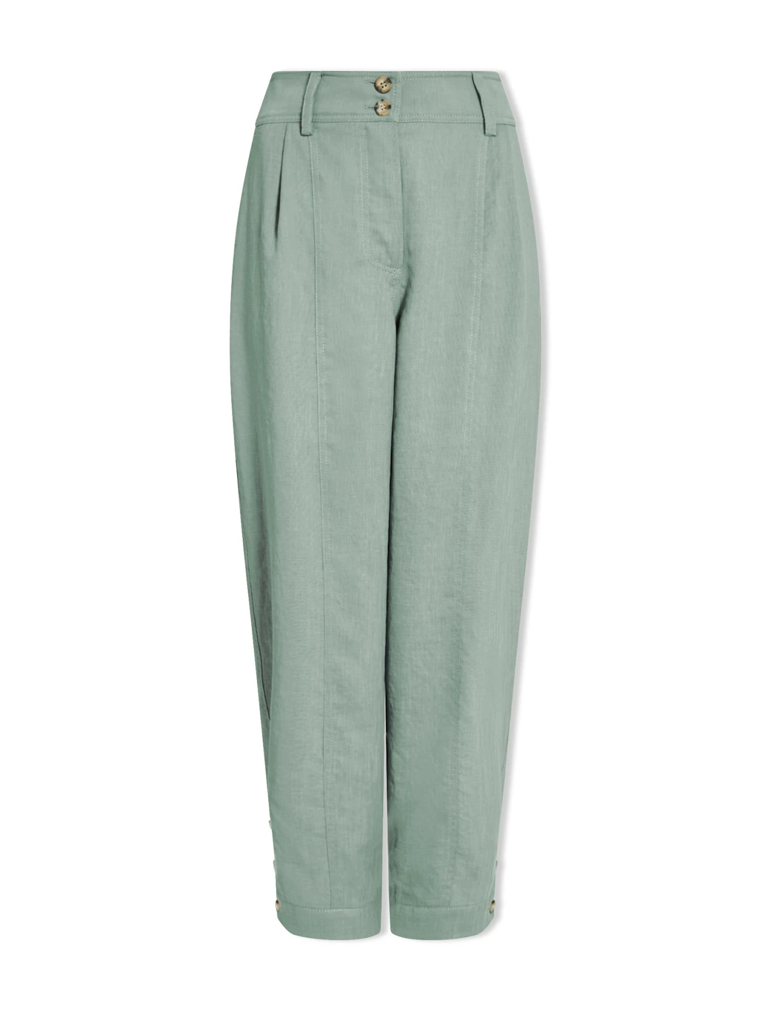 A high-waisted, pleated trouser is a smart addition to your wardrobe and the Tyson brings practicality to boot. Designed in our innovative Techni-Linen fabric, the barrel leg will hold its shape and look as good at the end of the day as the start. A shirred elasticated back waistband makes it comfortable for everyday wear, while the ankle-length summaryed cuff opens footwear options – a heel, loafer, sandal or trainer all work.