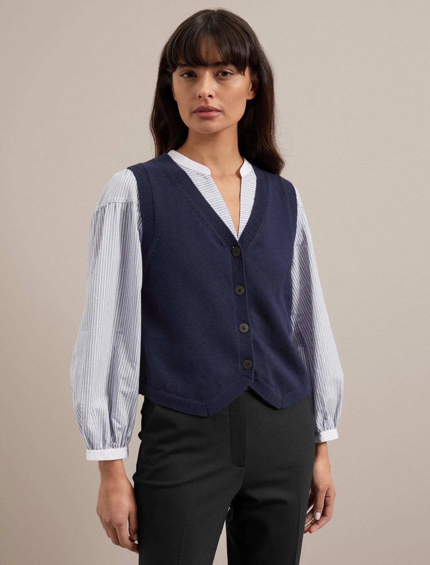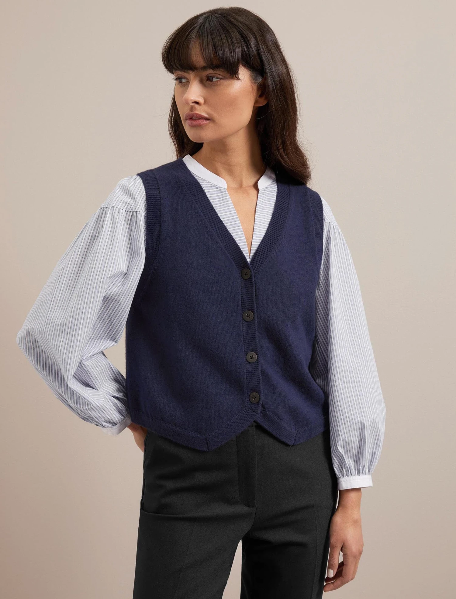 Back by popular demand, the Wesley knitted waistcoat is here for summer in a cool cotton blend. Wear on its own with a wide-legged trouser or a leather skirt for a sexier look or layer over a t-shirt or under a jacket on cooler days. There is virtually nothing it doesn’t look great with – the styling opportunities are endless.