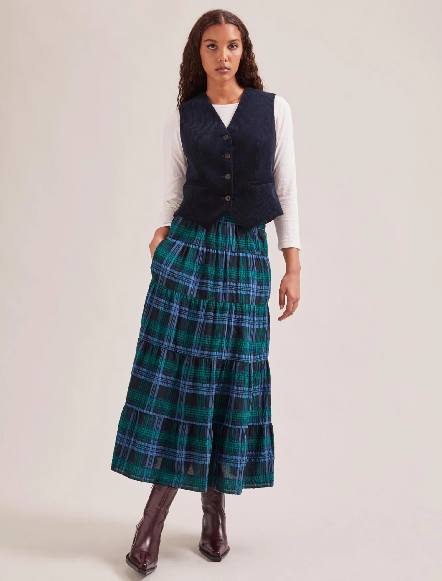 Our Wyatt waistcoat is cut from 100% organic corduroy, which has the look of luxe velvet and the feel of soft cotton. The figure-flattering shape and snug armholes mean you can wear it alone with our matching Harlow trouser and a trainer or over a long-sleeved T-shirt, jean and heel.