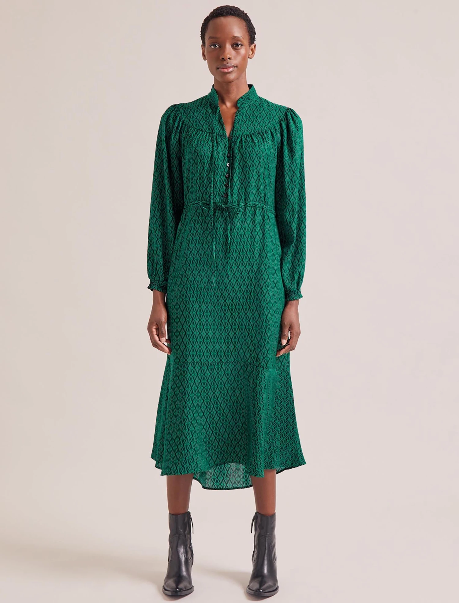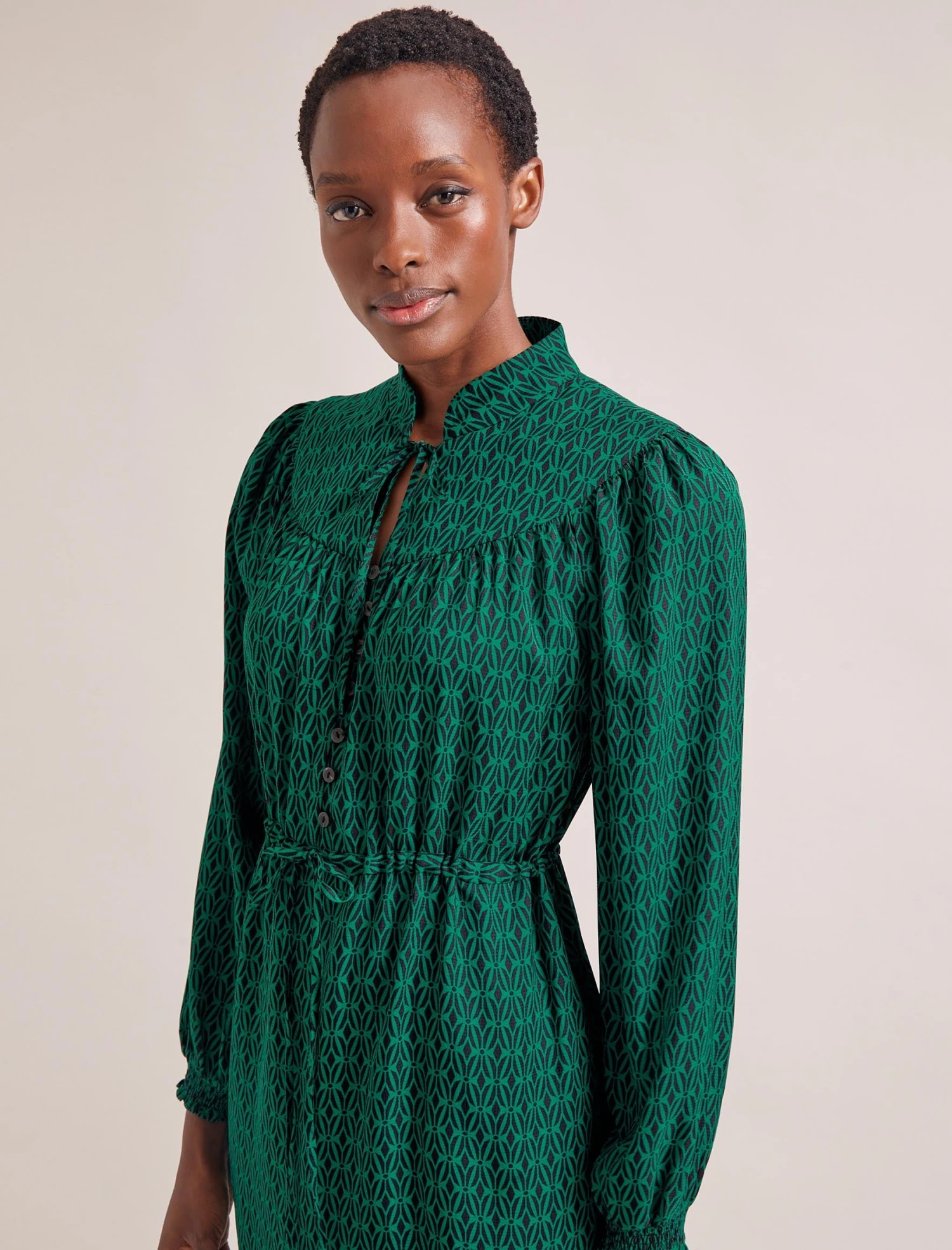 Time-saving heroes that require minimal styling and offer maximum ease are a Cefinn signature. Our spring 2024 Zahra iteration, for instance, now comes in a recycled printed hammered crepe that’s machine washable and crease-resistant. Plus, the pretty detailing and graphic print need only simple accessorising. Hello, stress-free mornings!